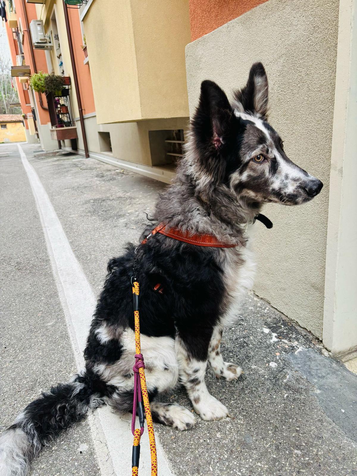 Seria e tranquilla, leda è il cane perfetto per le famiglie. Ha intrapreso un percorso di sheepdog e ogni tanto ci aiuta a spostare gli asini.